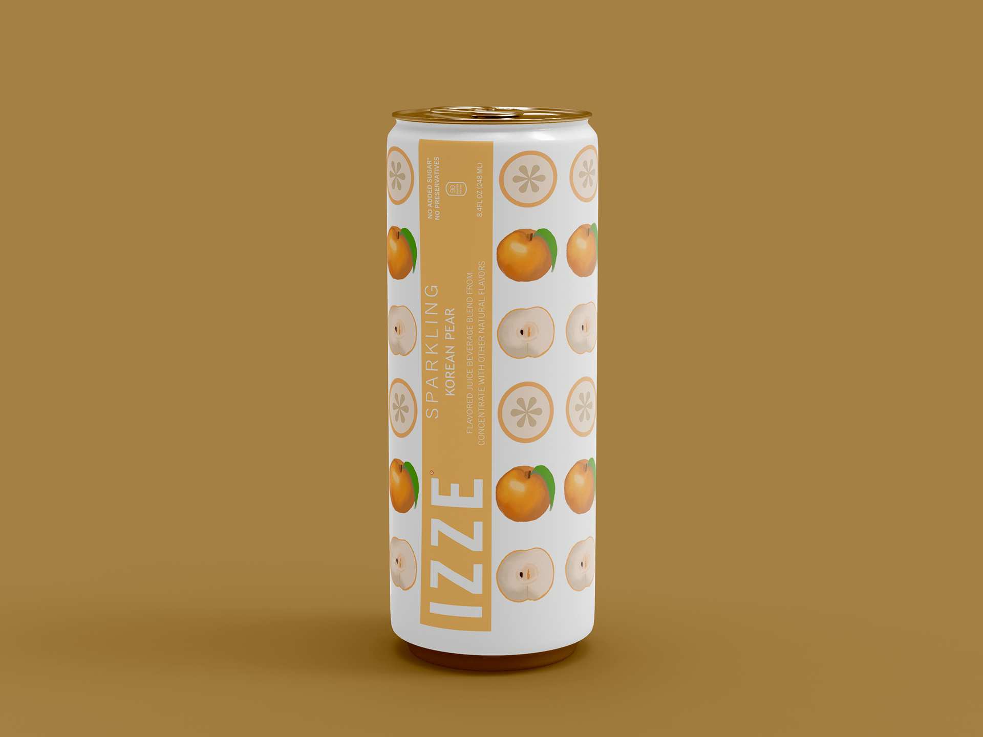 Overview: This project involved a creative conceptual redesign of IZZE beverage cans, introducing a trio of new seasonal flavors inspired by the fruits of Korea: Persimmon, Korean Pear, and Jeju Mandarin Orange. My design aimed to capture the vibrant essence of these fruits while maintaining the iconic IZZE branding.